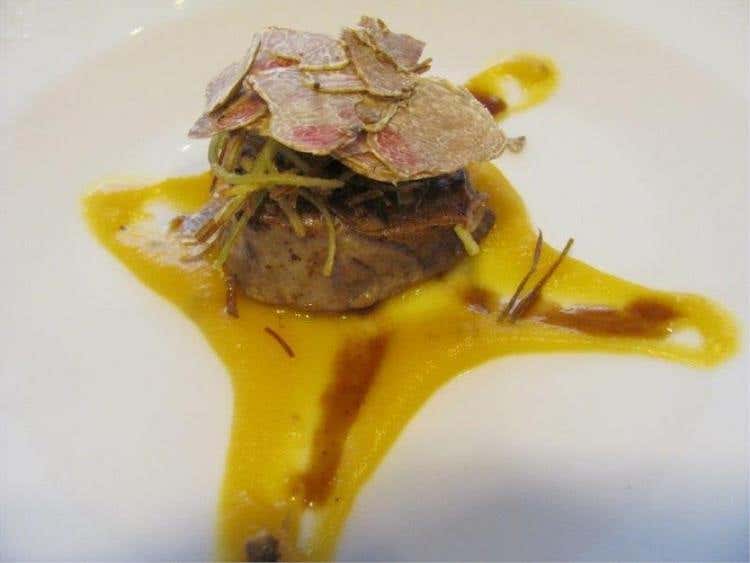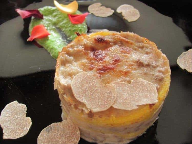 Lo chef romagnolo è arrivato alla vittoria con Riccioli di sogliole dell’Adriatico su vellutata di zucca violina, cime di rapa e tartufo bianco (antipasto); Passatelli al tartufo bianco con foglioline di spinaci e spuma di pecorino di fossa (primo); Ventaglio di spigola d’amo al tartufo bianco su chips di patate rosse e insalatina di carciofi alla menta (secondo), mentre il cuoco toscano ha proposto come antipasto Cappesante tostate in padella farcite di tartufo bianco, topinambur e purea di patate viola, quindi Tortelli di piccione su clorofilla di cavolo nero, polvere d’olio e tartufo bianco e Faraona del Valdarno al forno ripiena della sua carne e cicoria royale di porcini e tartufo bianco.