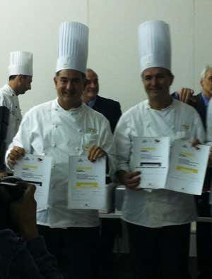 Il concorso “I PanGiuso 2014”, all'interno della manifestazione Re Panettone, si chiude con due maestri pasticceri salernitani sul podio: Alfonso Pepe (nella foto, a destra) della Pasticceria Pepe di Sant'Egidio Del Monte Albino si è aggiudicato il primo premio per il suo panettone tradizionale e Salvatore De Riso (nella foto, a sinistra) della pasticceria “Sal De Riso” di Tramonti (Sa) il premio per il miglior dolce innovativo con il suo “Girotondo di Frutta”. Ricordiamo che De Riso è attualmente candidato nel sondaggio Personaggio dell'anno 2014 dell'enogastronomia e della ristorazione (per votare CLICCA QUI)
