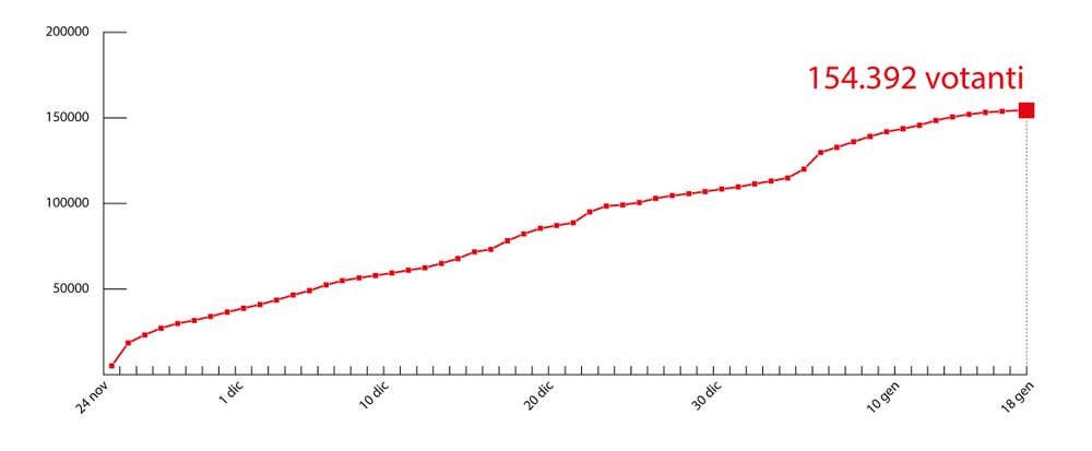 Qui sotto il grafico che mostra l'andamento del sondaggio con la crescita giorno per giorno del numero dei votanti.