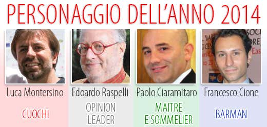Il pasticcere Luca Montersino, il giornalista Edoardo Raspelli, il maitre Paolo Ciaramitaro e il barman Francesco Cione sono i “fantastici 4” dell’enogastronomia e della ristorazione per l’anno 2014. Sono loro, infatti, i vincitori del sondaggio online di Italia a Tavola “Personaggio dell’anno”, che ha stabilito nuovi record, a cominciare dal totale dei votanti: 154.392 (contro i 111.559 della