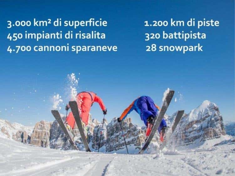 - Superficie totale Dolomiti Superski ca.: 3mila km2