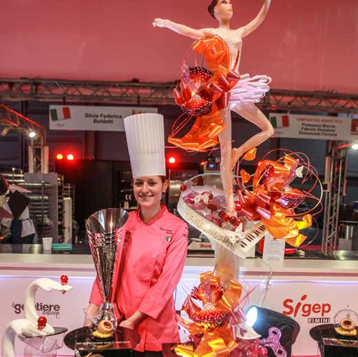 Silvia Federica Boldetti (nella foto) è The pastry queen 2016. La pasticcera italiana ha vinto a Sigep (fino a mercoledì 27 a Rimini Fiera) il campionato mondiale femminile di pasticceria che si svolge a cadenza biennale. La pasticcera italiana (3522 punti) ha prevalso sulla giapponese Aki Tanimura (3239) e al terzo posto si è classificata la francese Marléene Bachellerie (3096). In gara otto concorrenti provenienti anche da India (Sanjana Patel), Russia (Farida Babugoeva), Taiwan (Chia-Ying Lin), Brasile (Giuliana Cupini) e Croazia (Nikolina Loncar). Le concorrenti di Serbia e Australia si sono ritirate dalla competizione alla vigilia per problemi di salute.