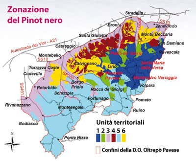 Siamo sul 45° parallelo, che non è il titolo di un romanzo di Joseph Conrad, ma una straordinaria linea che nel mondo vitivinicolo unisce la qualità. Il paesaggio è tra i più eterogenei, non a caso molto simile alla Borgogna, dove nascono vini originali e indimenticabili, tra cui non a caso il Pinot nero, che dà origine, oltre che a spumanti metodo Classico e Charmat, a splendidi vini rossi fermi da invecchiamento. Il tutto arricchendo sul piano qualitativo una delle offerte enologiche più ricche d'Italila per varietà e tipologie.