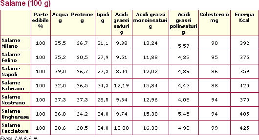 è un salume di antichissima tradizione, che nel corso dei secoli si è evoluto in diverse varietà, fino a costituire una vera e propria famiglia, con specialità per ogni regione. I salami italiani si distinguono tra loro per il tipo di macinatura della carne (che può essere fine, media o grossa) e per le spezie e gli ingredienti (aglio, peperoncino, semi di finocchio, vino) che contribuiscono a dare a ogni singolo tipo una spiccata personalità.