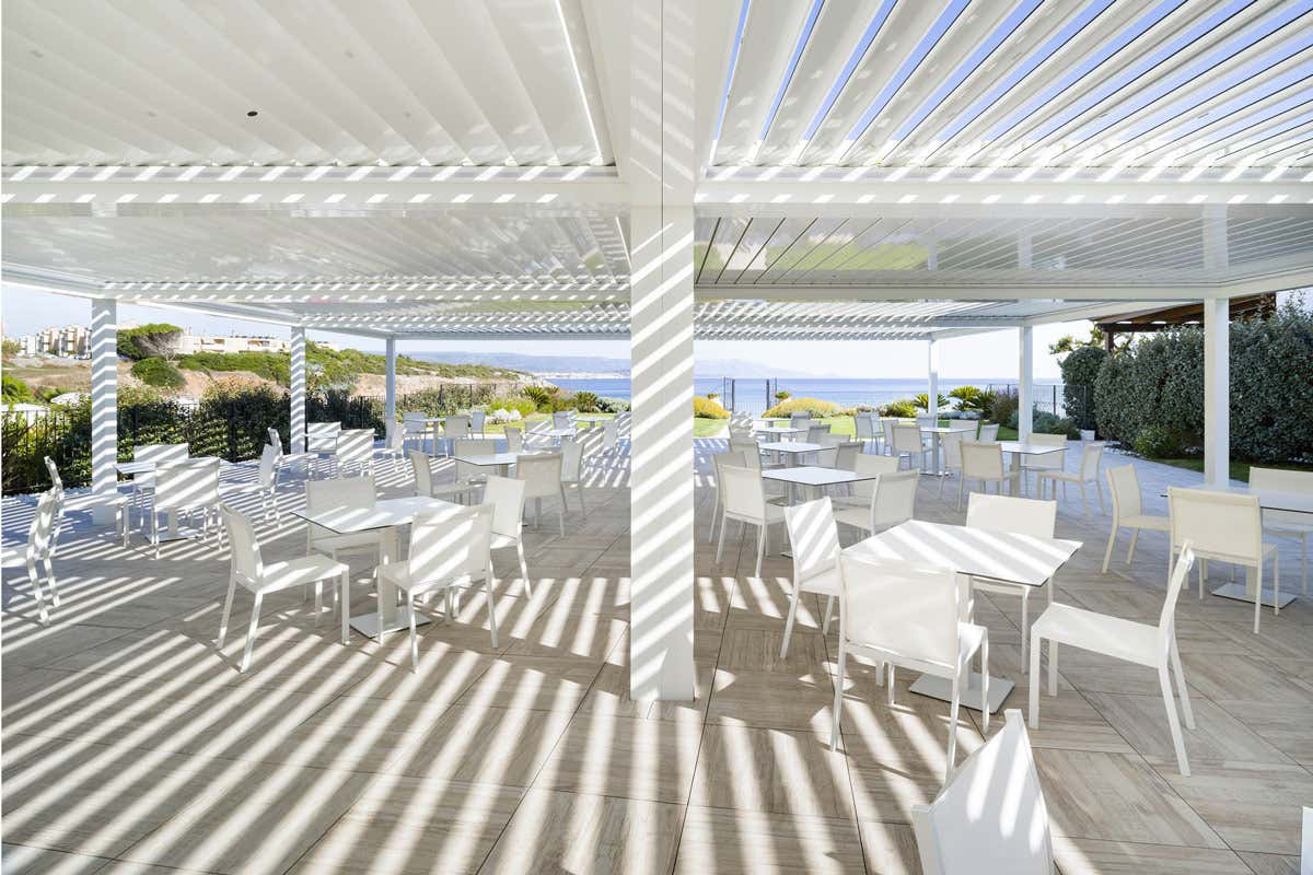 Le pergole Gibus valorizzano gli spazi outdoor del Punta Negra Hotel di Alghero (Ss)