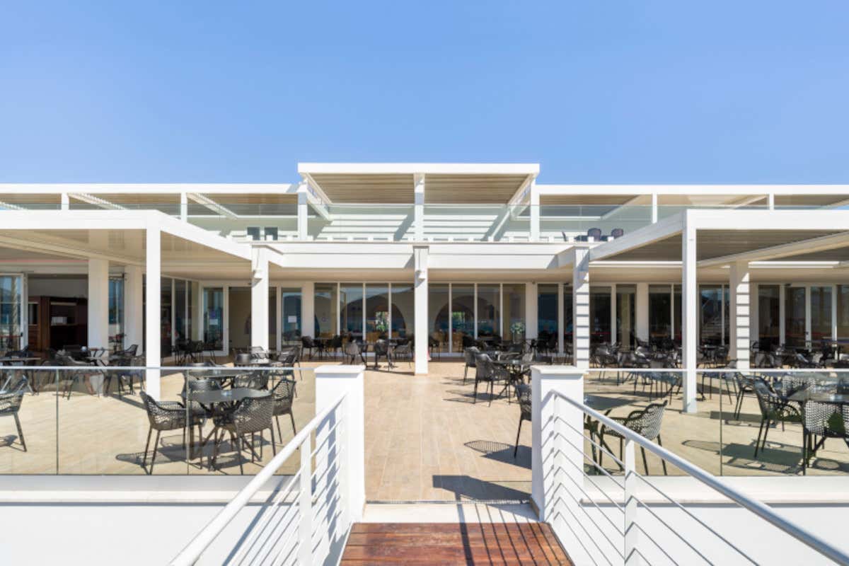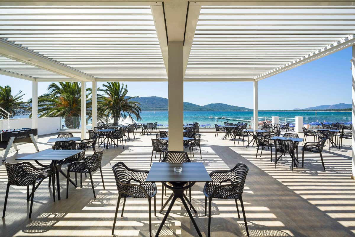 La struttura, situata ad Alghero (Ss), ha rinnovato le terrazze al servizio del bar e quella al piano superiore, scegliendo le pergole bioclimatiche Gibus Twist, che esaltano le potenzialità degli spazi all’aperto