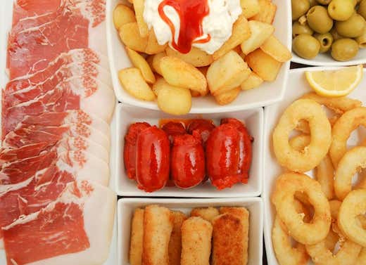 Immancabile il jamon iberico. Le tapas, soprattutto nei Paesi Baschi e in Catalogna, non sono solo un'esperienza gastronomica. Come ha sottolineato Marco Bolasco, sono quasi una forma di linguaggio perché invitano alla socialità e alla condivisione, specie se accompagnate da un buon bicchiere. Sono piccole porzioni, e quindi non costose, perfette per un modo di mangiare veloce e informale, senza nulla togliere al gusto e alla tradizione, in linea con le moderne esigenze e con l'evoluzione della ristorazione. Gli spagnoli amano fare il giro dei locali in allegria, gustandone tante e brindando. La convivialità è favorita poi dal fatto che le tapas si mangiano in piedi di fronte ad un tavolo rotondo o davanti al bancone.