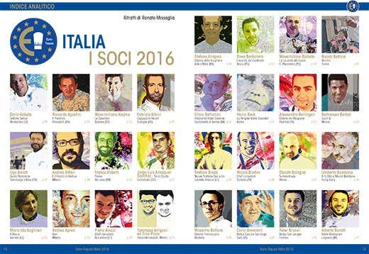 Caratterizzata da una veste grafica elegante e ricca di informazioni, la Guida 2016 Euro-Toques Italia contiene le schede dettagliate di 168 cuochi degli oltre 200 iscritti all’associazione (contro i 104 del 2014) ed è stata realizzata da Italia a Tavola. Assoluta novità per prodotti editoriali di questo tipo è la presenza dei ritratti di tutti i cuochi di Euro-Toques Italia realizzati da Renato Missaglia, ormai diventato il ritrattista dei protagonisti del mondo dell’enogastronomia italiana. La galleria dei ritratti costituisce l’indice nominativo degli associati. C’è anche un indice per regioni.