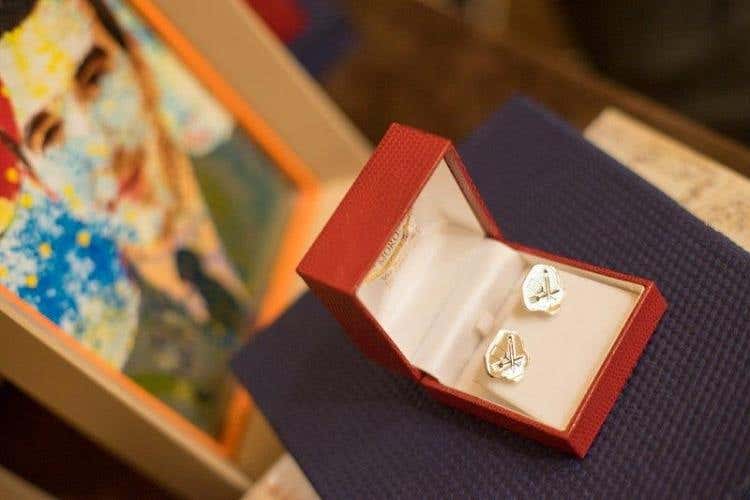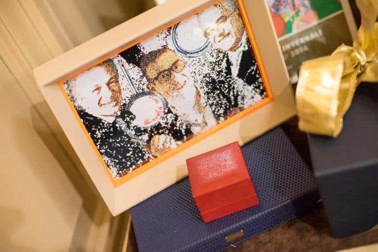Enrico Magnani, brand ambassador di Onesti Group, gli ha consegnato una confezione di distillati. I gemelli sono stati consegnati da