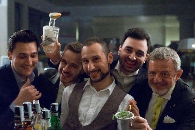 Allegria, amicizia e spettacolo 7 barman giocano con gli stilisti