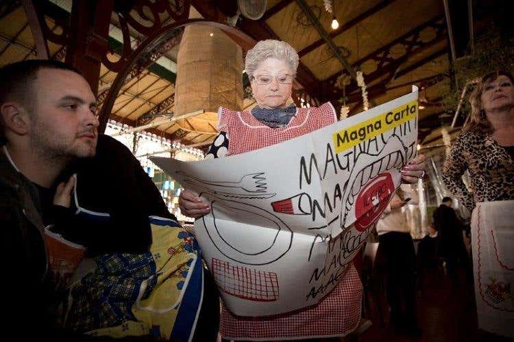 Grandi festeggiamenti per il primo anno di vita del Mercato Centrale di Firenze, dove per l'occasione è stato consegnato il “Mestolo di legno alla tradizione” alla signora Nara Nesi per un delizioso Sformato con Cibreo
