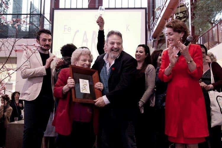 Ed è stato proprio Toscani a consegnare, nel suo ruolo di presidente della giuria, il premio “Mestolo di legno alla tradizione”, promosso dal Mercato Centrale; vincitrice con uno splendido Cibreo - tipico secondo piatto della cucina fiorentina - è stata la signora Nara Nesi (nella foto sopra), 88 anni, mamma del gastronomo Leonardo Romanelli, e personaggio simbolo delle tradizioni culinarie di Firenze.