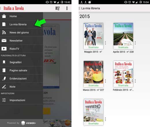 La mia libreria” (archivio dei numeri di Italia a Tavola scaricati); “