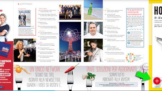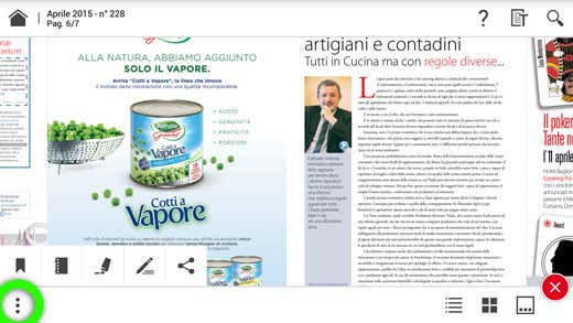 Mentre si sfoglia una rivista, si può accedere a funzioni opzionali tramite il simbolo "+" in basso a destra: