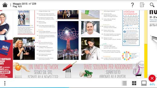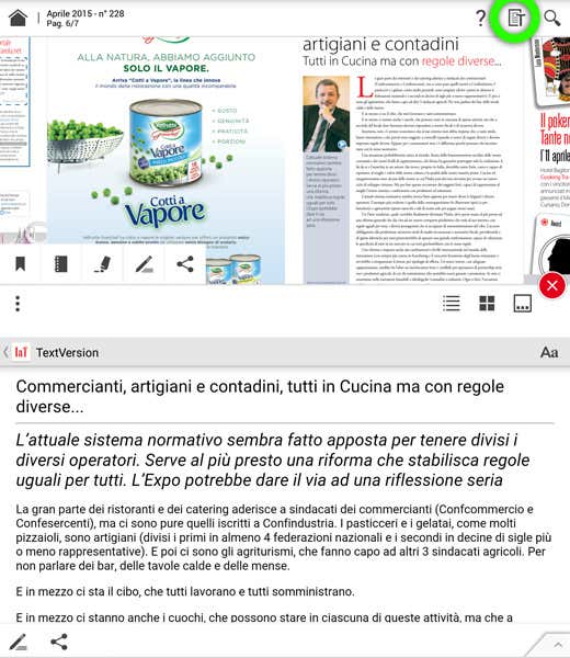 Nell'angolo in alto a destra si possono trovare informazioni generali sulla modalità "sfoglia rivista" e sui vari strumenti che la app offre: