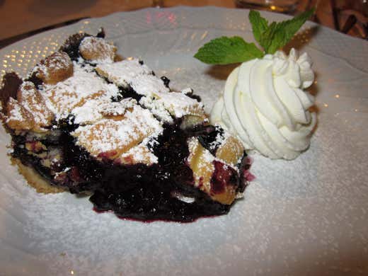 Fabio ha deciso di proporre ai giornalisti enogastronomi il “menu a la carte” del ristorante, dando prova di coerenza e autenticità. Il pranzo è iniziato con la trota del Sarca marinata in carpione alla quale è seguito un delicato risotto al limone, rosmarino e Cassolet della Val di Sole; quindi si sono assaggiate delle gustose tagliatelle di mirtillo nero e ragù di capriolo per proseguire con una saporita punta di filetto di struzzo (da allevamento trentino) al forno. Roberta ha preparato per gli ospiti una deliziosa crostata di Mirtilli e suo fratello Marzio ha scelto, con competenza, i vini delle Cantine Monfort di Lavis in abbinamento al menu. Al termine del pranzo, una passeggiata fino a Piazza Duomo percorrendo la “Contrada larga” una delle più belle e colorate vie della città ricca di palazzi e case patrizie: palazzo Thun, palazzo Geremia, palazzo Alberti Colico, le case Cazuffi e Rella affrescate con figure mitologiche e floreali risalenti al XIV secolo, che testimoniano il prestigioso passato della città, iniziato già in epoca romana.
