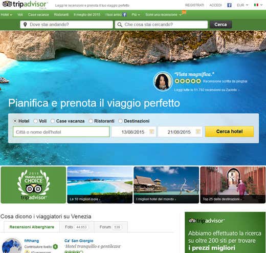 In questi giorni TripAdvisor ha anche adottato una nuova interfaccia (in modalità test solo su alcune grandi città americane) che focalizza l’attenzione dell’utente appunto sulla possibilità di prenotare, mentre sull’homepage del sito italiano campeggia la scritta: «Pianifica e prenota il viaggio perfetto». Infine, il portale sta cercando di dare nuova visibilità agli hotel affiliati alle cosiddette “Business listings”, che offrono una offerta speciale su TripAdvisor.