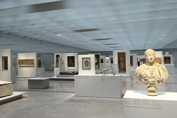 La Grande Galerie è formata da uno spazio unico rettangolare di 3mila metri quadrati con una lunghezza di 120 metri. La particolarità è che le opere in mostra, scelte dai curatori del Louvre e spesso avvicendate, sono esposte secondo un criterio cronologico che parte da 3mila anni prima di Cristo e arriva all’Ottocento, ripercorrendo in sintesi i grandi itinerari delle gallerie del museo parigino. Sono esposte opere di assoluto valore, partendo dalla scultura cicladica e dalle maschere egizie, passando per la grande statuaria greca e romana per addentrarsi poi nel Medioevo e nel Rinascimento.