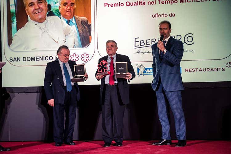 “Qualità nel tempo Michelin Italia 2017” è il premio consegnato da Eberhard & Co. durante la Awards Ceremony della nota Guida francese a Parma: un orologio Scafograf 300 ai fratelli Marcattilii del San Domenico di Imola
