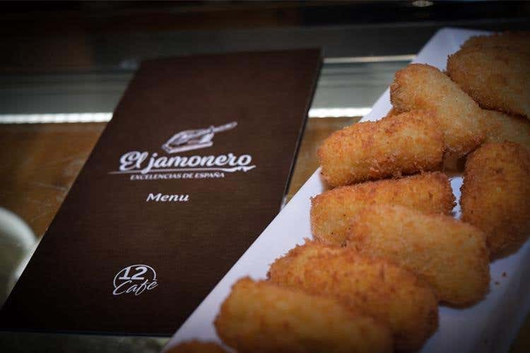 El Jamonero propone un menu dedicato al pranzo e all’aperitivo, che spazia dai taglieri di salumi e formaggi spagnoli ai panini, oltre a tapas e insalate, il tutto abbinato a vini iberici (Bianco Phlox ’15, Rosso Merlot ’15, Rosato Gris ’14), alla birra artigianale di