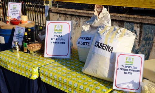 Dai pizzaioli acrobatici ai casari che preparano la mozzarella, alla manifestazione non mancano fusti di pomodoro concentrato cinese e mozzarella dell’est Europa, poiché la Campania è la regione principale di destinazione per sfruttare impropriamente l’immagine di qualità conquistata nell’alimentare. Negli striscioni si legge “Subito l’etichetta di origine”, “Salviamo il San Marzano!”, “La mozzarella si fa con il latte”.