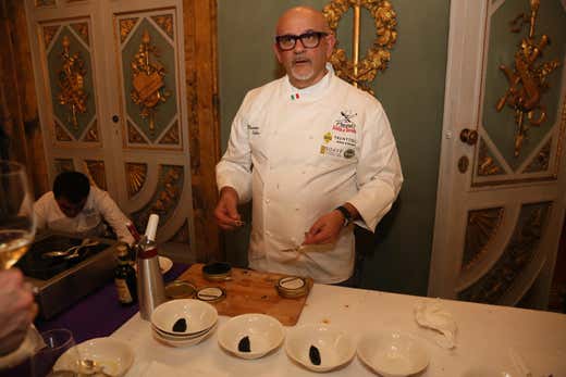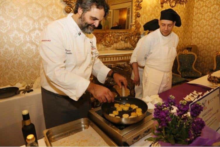 Euro-Toques Italia e International, ha deliziato i gourmet astanti con un piatto pressoché perfetto: Risotto Regina Vittoria con gambero rosso siciliano, tartufo nero e Grana Padano Riserva 24 mesi.
