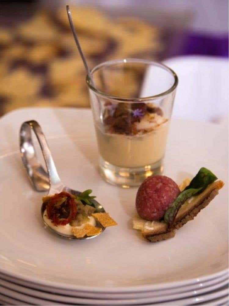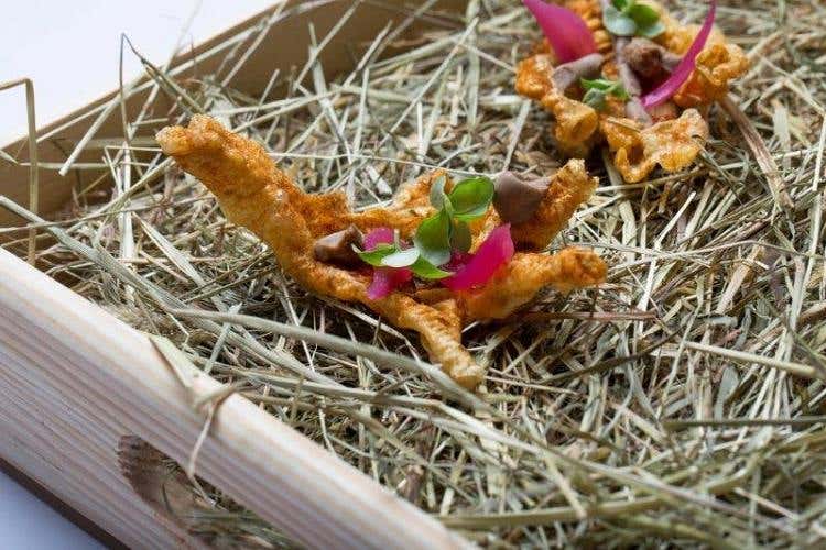 Il piatto è composto da una zampa di gallina, disossata, fritta, aromatizzata alla paprika, il paté dei suoi fegatini, la cipolla in agrodolce e il basilico. Divertente, un po’ come il suo nome, questo piatto esprime la creatività, la capacità e le tecniche all’avanguardia, interpretate attraverso l’utilizzo di paprika, cipolla in agrodolce e basilico, per trasformare una delle grandi materie prime del territorio, la zampa di gallina e i suoi fegatini. Il risultato? Una cucina dove il leit motiv è la tradizione locale orientata all’innovazione.