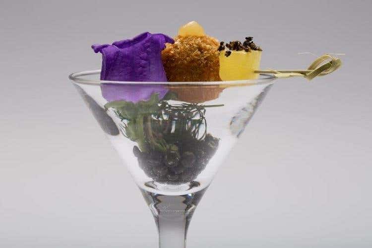 Il piatto è composto da un raviolo farcito di cavolfiore e patate al lime, con una spuma di latte di capra, ricotta e yogurt, è impreziosito dal caviale Asetra Calvisius e dall’olio di ricci di mare. Racchiude alcuni dei must dell’elegante ristorazione italiana, questo raviolo, scrigno di dolcezza e carattere, grazie alle note del cavolfiore e della patata che incontrano la freschezza del lime. Gusto di grande equilibrio, che passa per le note più acidule di una delicatissima spuma di latte di carpa e yogurt, preludio alla sapidità che il palato incontrerà assaporando il caviale Asetra e l’olio di ricci di mare. Il piatto è un esempio di come la ricerca gastronomica sia in grado di plasmare e fondere i gusti più decisi in un pout pourri di sapori di grande eleganza.