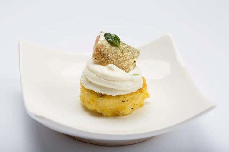 Frittella di riso Acquerello alla birra, aringa affumicata e mascarpone al lime” dello chef