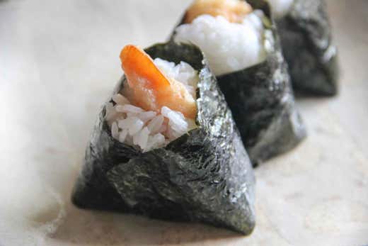 Ten-musu, onighiri ripieno di tempura di gamberi