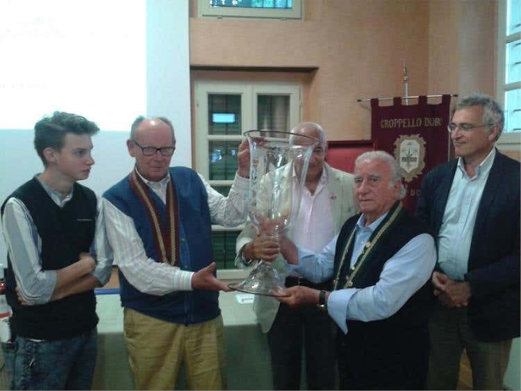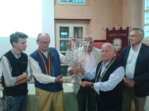 Gianpietro Avanzi con il nipote Matteo vengono premiati da Luigi Alberti e Alessandro Luzzago