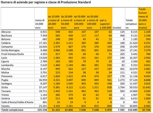 Nel nostro Paese le aziende condotte da “over 65”, e in possesso dei requisiti necessari per attivare società di affiancamento, sono all’incirca 67mila. Aziende con fatturati sostenibili (dai 20 ai 100mila euro) e nel cui ambito non sono già presenti altri familiari (tabella allegata). I potenziali “aspiranti” tra i giovani disoccupati, invece, sono circa 200mila. Un dato, quest’ultimo, frutto di una stima che dal dato complessivo “tira fuori” i giovani che hanno manifestato la possibilità di entrare in agricoltura.