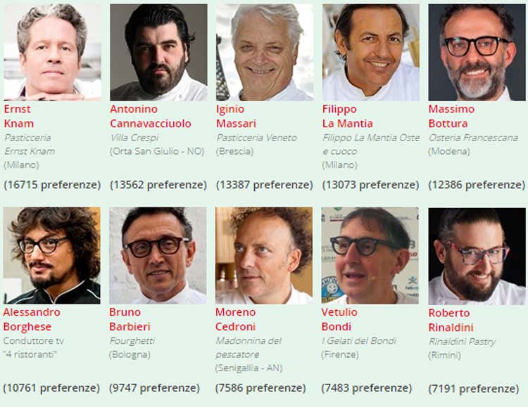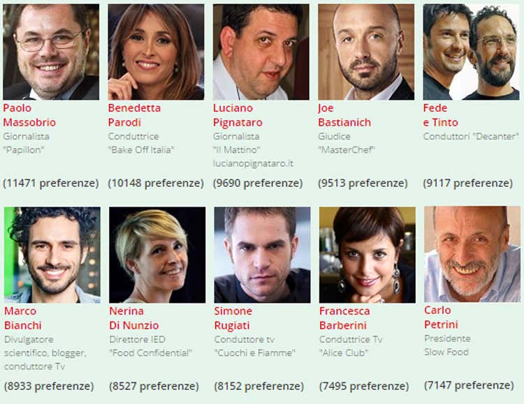 Nuovo record di votanti nel sondaggio di Italia a Tavola: 197.002. Primi classificati il pasticcere Ernst Knam, il presidente Ais Antonello Maietta, il barman Danny Del Monaco e il giornalista Paolo Massobrio. Il nome più cliccato è stato quello del “re del cioccolato”. Classifiche incerte fino all’ultimo