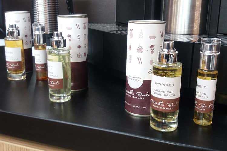 Un mix studiato tra gusto e olfatto che vuole regalare un'esperienza sensoriale completa, che non tralasci nulla di quello che i singoli prodotti possono offrire. «Sono fragranze alimentari - ci spiega Antonella - completamente edibili e naturali perché l'olio essenziale è estratto tramite una distillazione a corrente di vapore, senza la mediazione di alcun agente chimico. Grazie a queste soluzioni noi riusciamo ad estrapolare il carattere di un piatto, o di una tazzina di caffè».