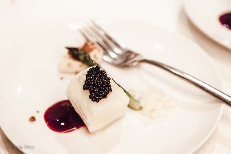 Filetto di merluzzo, tuberi, punte di asparagi, caviale Calvisius, quinoa (Gaetano Trovato)