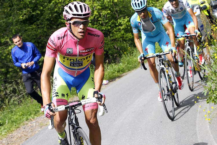 La maglia rosa al passaggio sul Mortirolo in una recente edizione del Giro