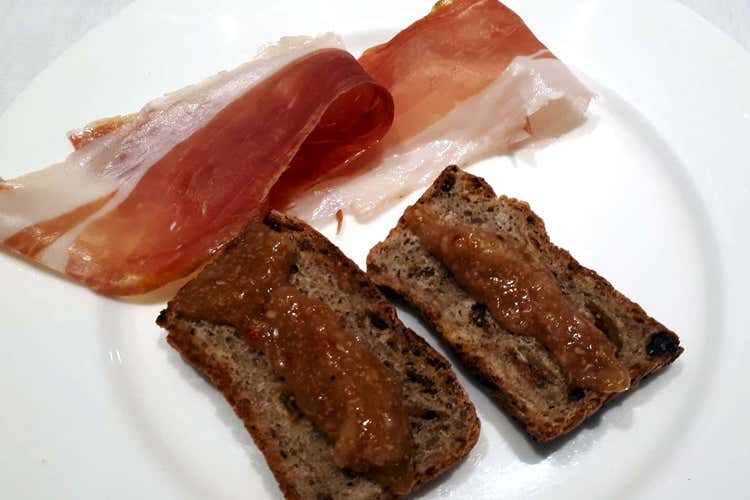 Pan di fichi in bruschetta con fichi al naturale e prosciutto locale (La Pentola di Leonardo La passione vinciana per la cucina)
