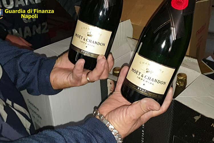 Nel dettaglio, sono state sequestrate 774 bottiglie di champagne, 804 di olio "Sapio" e di alcool etilico delle distillerie "La Sorgente" e "Fiume", nonché 129.400 accessori per il confezionamento.