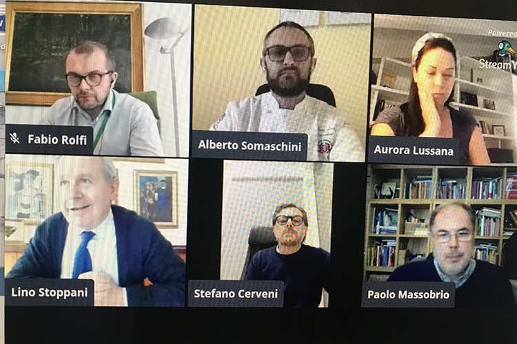 On line Paolo Massobrio, giornalista enogastronomico, Alberto Somaschini, presidente Unione cuochi Lombardia, Stefano Cerveni, presidente del progetto di promozione enogastronomica Cibo di Mezzo e chef del ristorante Due Colombe, una stella Michelin a Borgonato (Bs) e Lino Stoppani, presidente della Federazione italiana pubblici esercizi. L’incontro è stato moderato dalla giornalista Aurora Lussana.