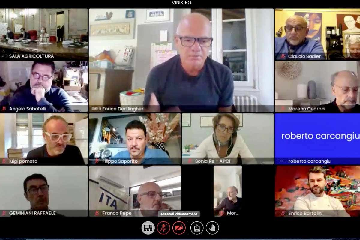 Presenti all’incontro, oltre al ministro di casa, Stefano Patuanelli anche la viceministra allo Sviluppo economico, Alessandra Todde, mentre dal lato associazioni di categoria c'erano Ambasciatori del Gusto, Federazione italiana cuochi, Le Soste, Euro-Toques, Associazione professionale cuochi italiani, Chic – Charming Italian chef e Jeunes Restaurateurs Italia.