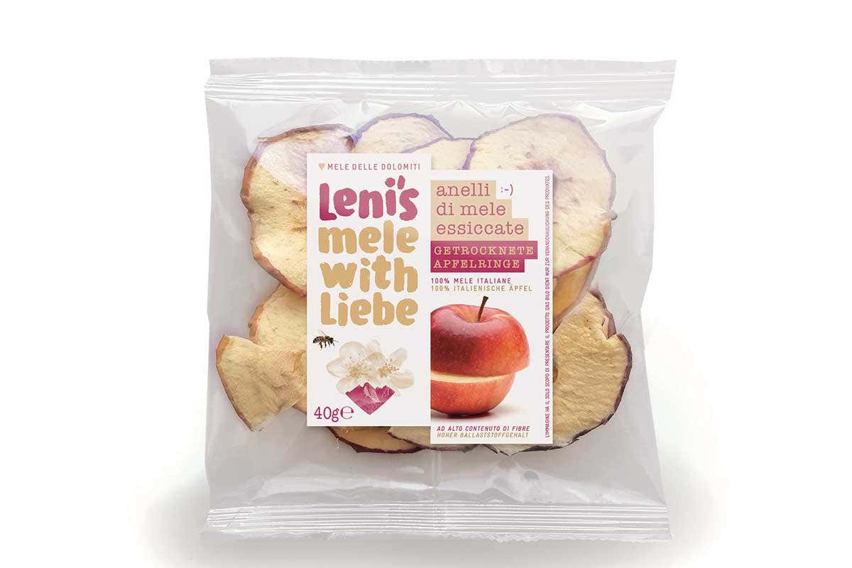 Leader mondiale della lavorazione della mela, nato dalla virtuosa esperienza di Vog Products, Leni’s si conferma come uno dei principali punti di riferimento per la produzione di prodotti a base di mela 100% italiani. Le mele Val Venosta, Marlene, Melinda e La Trentina sono trasformate with Liebe da Leni’s in spremute, puree e spicchi che arrivano sulle tavole di tutta Italia e del mondo. Comprese quelle sotto forma di Chips.