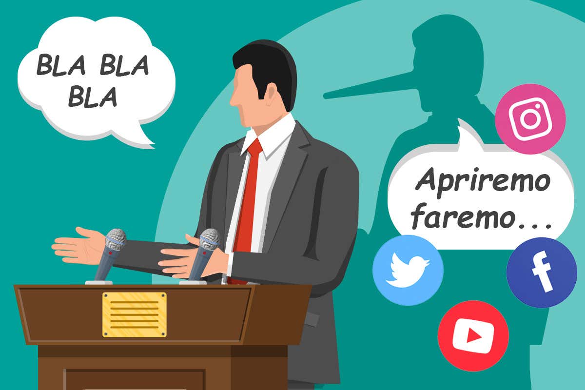 politici in tempi di pandemia si affidano ai social network per spostare gli aghi della bilancia sulle questioni più spinose piuttosto che metterle sui tavoli del Parlamento. Fanno un gran chiacchierare e promettere rivoluzioni (anche quando si parla di riaperture dei
