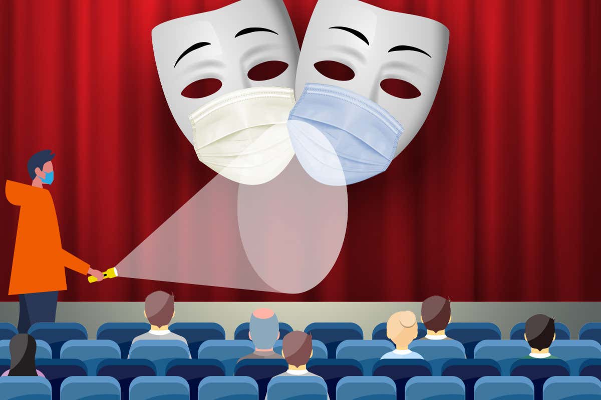 Le maschere che controllano le… mascherine al cinema e al teatro, che delle maschere è la casa per eccellenza. Le maschere che stavano per scomparire ma che grazie alle mascherine tornano in auge. Finzione e realtà che si intrecciano in un intrigo tra mondo e palcoscenico, strada e grande schermo.