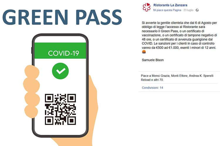 Il post del ristorante, nel mirino degli anti Green Pass