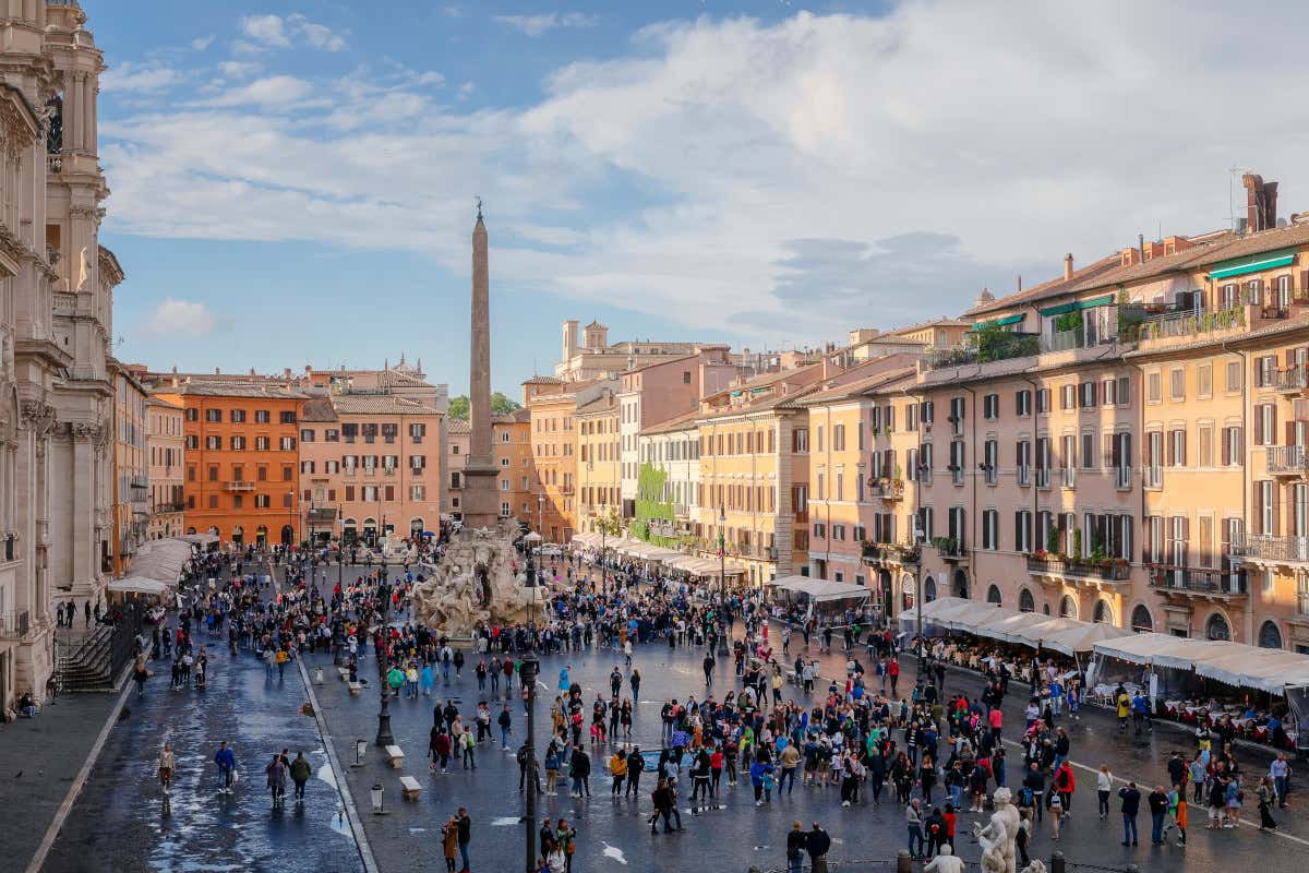 Piazza Navona a Roma piena di turisti  Ognissanti: il turismo è tornato al 2019, ma il 20% degli alberghi non c'è più
