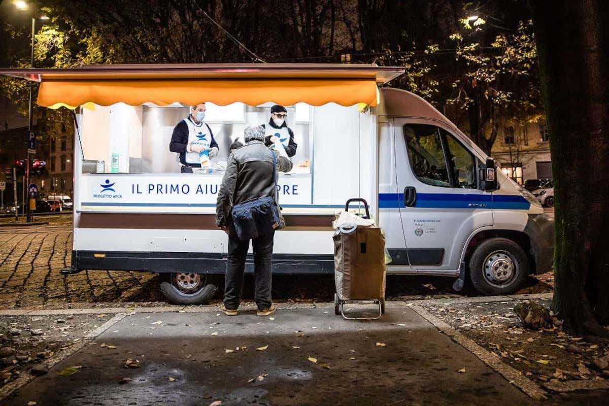 La Cucina Mobile permette di organizzare il servizio quotidiano di distribuzione in strada di pasti cucinati e completi alle persone senza dimora