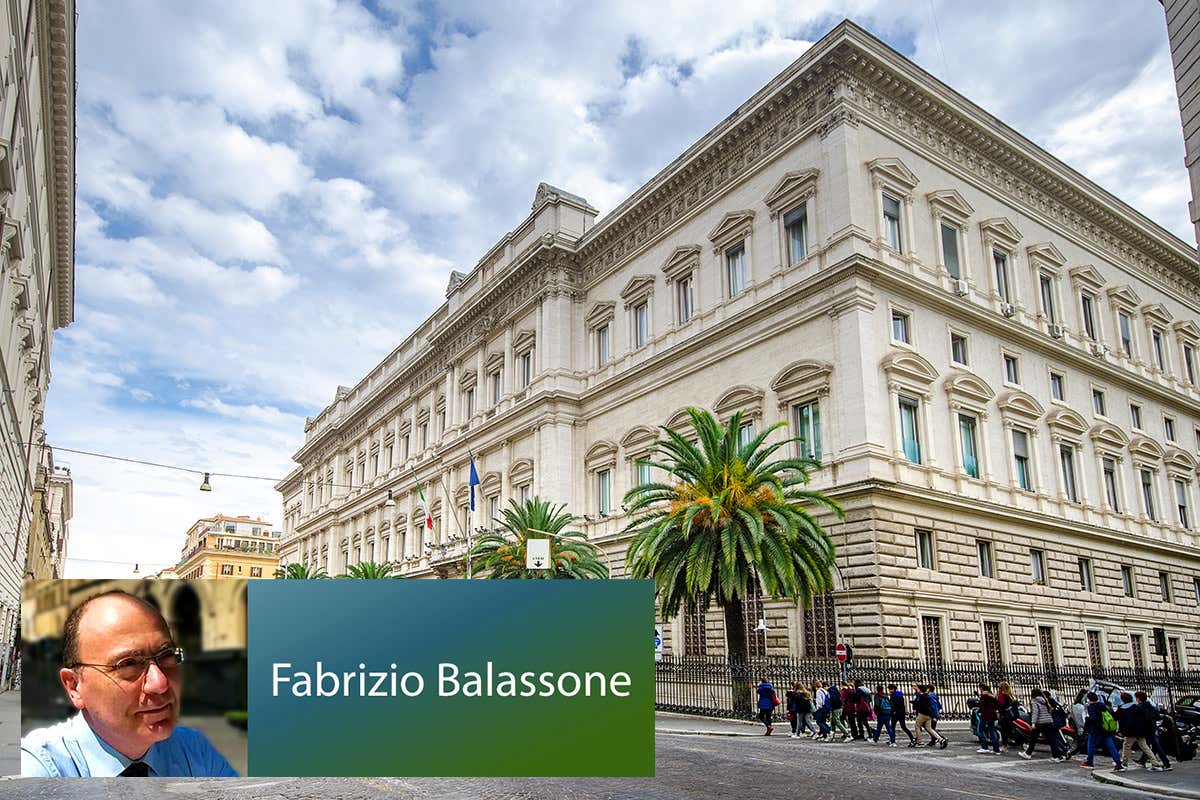La sede della Banca d'Italia. Nel riquadro, Fabrizio Balassone