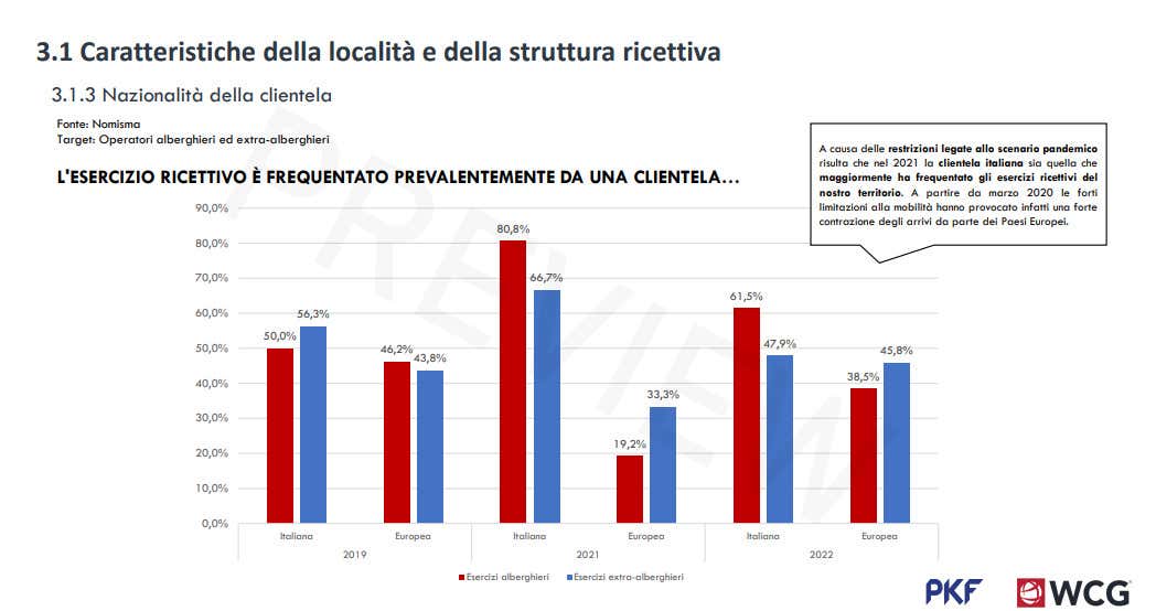 Sempre secondo il rapporto, date le preferenze espresse da turisti inglesi e americani, che mostrano voglia di tornare a viaggiare, gli stranieri prediligeranno hotel di lusso (37%), hotel a 3 stelle (25% turisti del Regno Unito, 16% turisti dagli Stati Uniti), case e appartamenti in affitto (15% e 14%).
