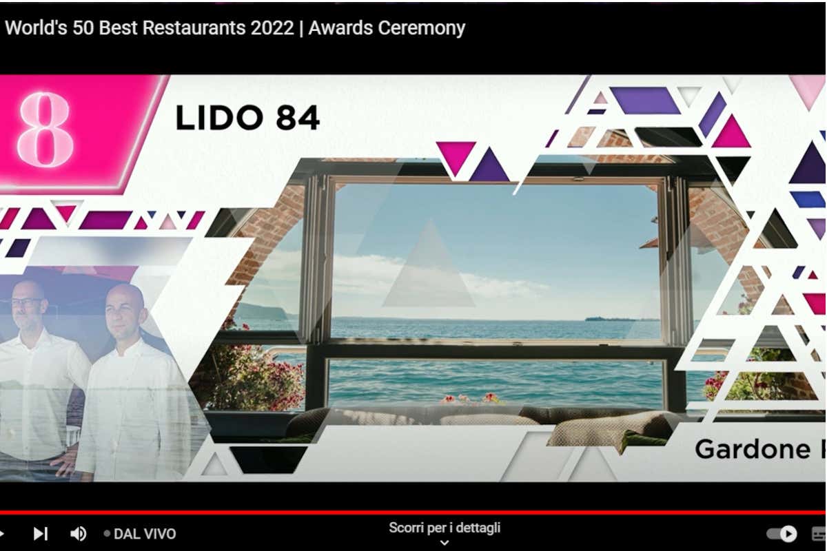 Il Lido 84, il ristorante di Gardone Riviera (Brescia), guidato da Riccardo Camanini, conquista la posizione più alta, classidicandosi 8° (nel 2021 era giunto 15°).