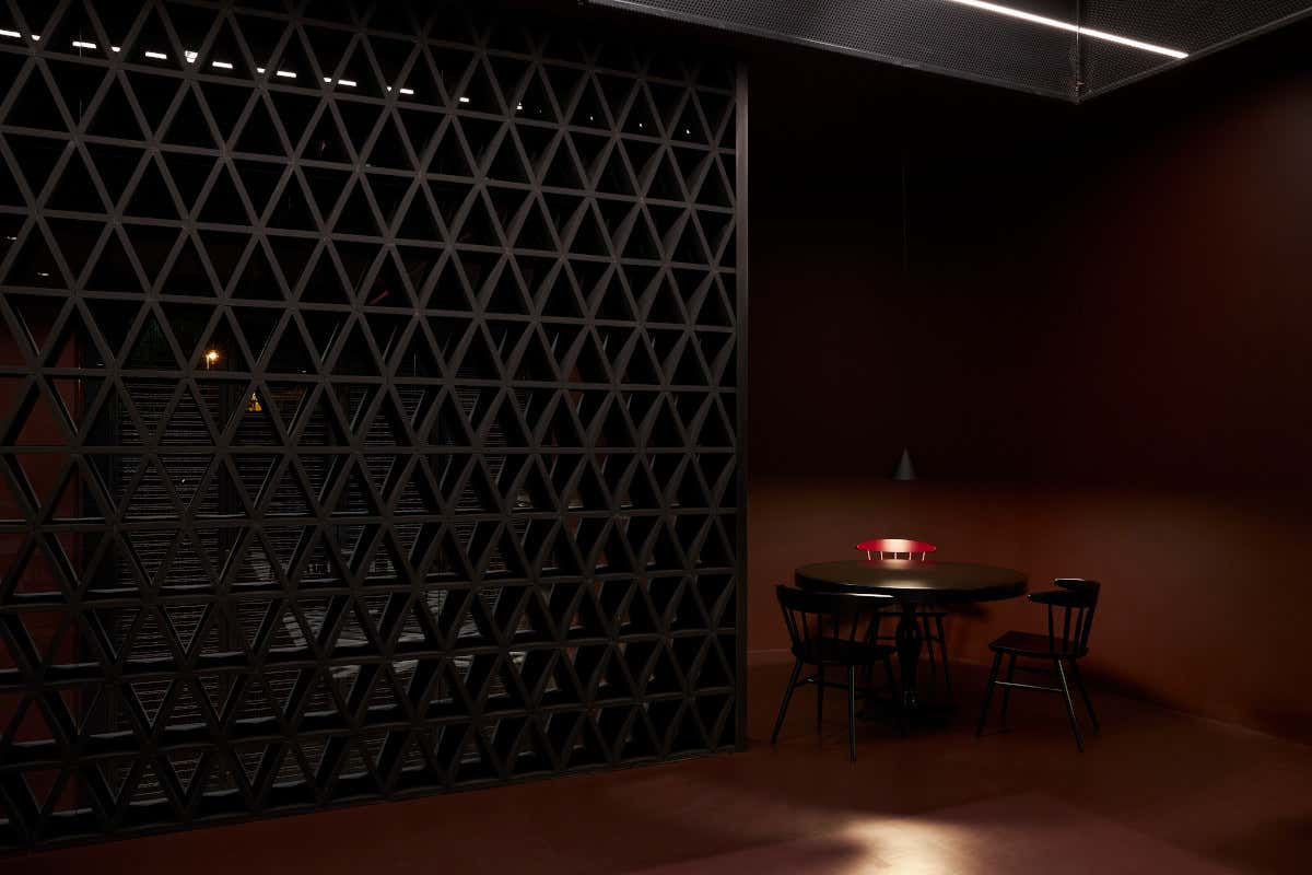 Nel caso di Osteria Moderna, il colore è stato il punto di partenza, una tonalità cromatica cara alla città: l’amaranto, nella sua particolare tonalità di rosso, calda e avvolgente, che si palesa all’interno del locale in modalità “full-color”, con lo stesso impeto di un cuore intrepido.